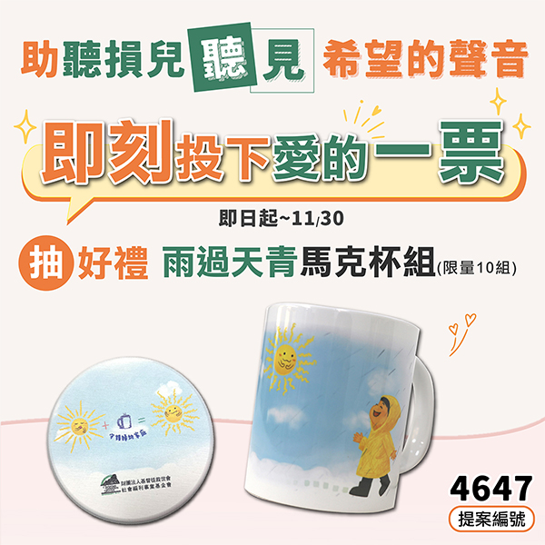 邀請您投下愛的一票,並分享給所有關心兒童發展的朋友們,每一票都是聽損兒能夠及早復健的力量。